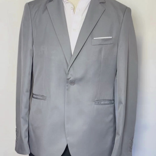 Descubre este blazer de corte impecable, diseñado para el hombre que busca un estilo formal moderno y accesible. En un luminoso y versátil color gris claro, con un ajuste Slim Fit contemporáneo, esta prenda es la solución perfecta para revitalizar tu look de oficina o para ocasiones semi-formales con un toque fresco y actual.